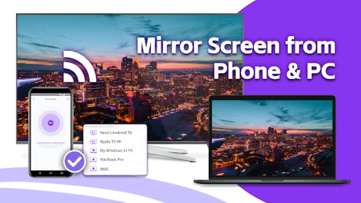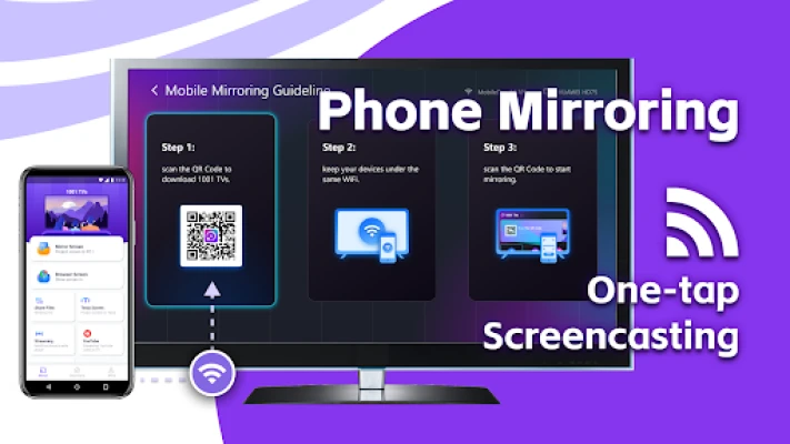 1001 TVs: Mirror screens from Android phones, iPhones, Windows, and Mac devices to your Android TV.