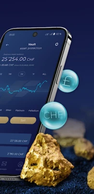 You have your own ‘vault’ for the digital storage of whichever metal you’ve purchased. You can easily access your ‘vault’ via the app, where you can not only view your current precious metal holdings, but also see how much of each currency is available for further investment. With the help of selected data charts, you can track the development and movements of the gold price and other important prices in the precious metals markets in real time. This allows you to constantly maintain an overview of your investments at all times, and confidently make informed decisions.